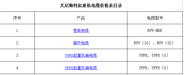 起重机电缆价格表